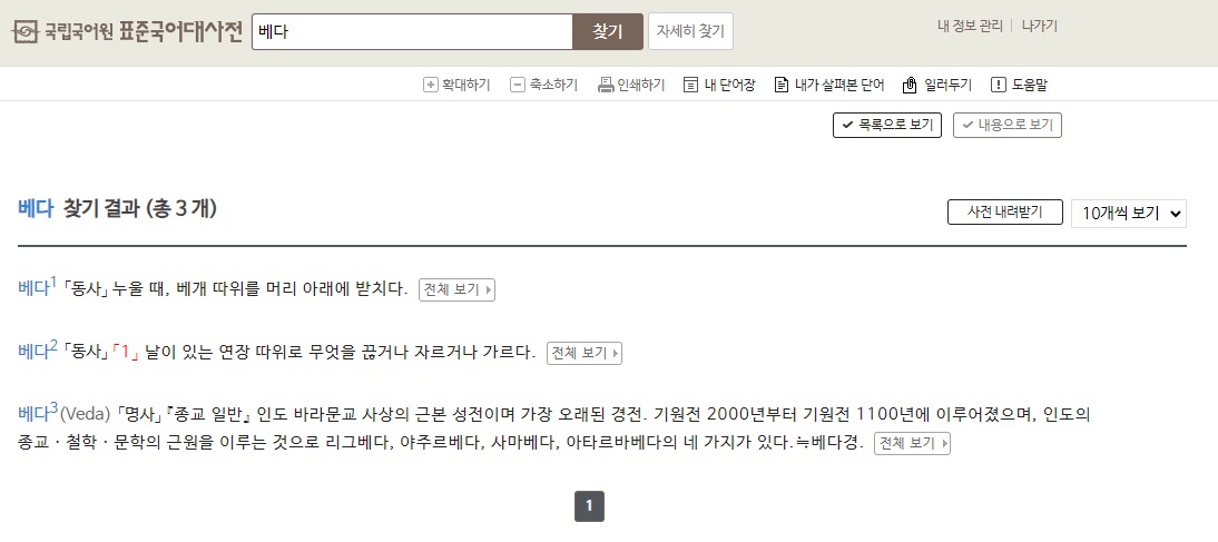 우선 '베다'를 사전에서 찾아보면 아래와 같이 설명하고 있습니다.